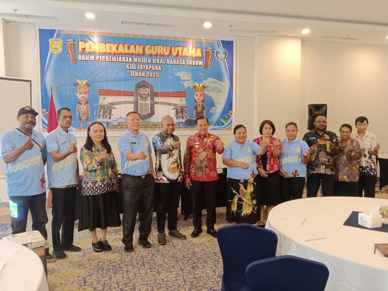 Jayapura,- Sekitar 40 Guru, mulai dari tingkat PAUD, TK, SD, SMP, SMA, dan SMK se- Distrik Muara Tami mengikuti Pembekalan Guru Utama dalam pembelajaran muatan lokal bahasa Skouw tahun 2025. Pembekalan tersebut merupakan langkah awal penerapan pelajaran muatan lokal bahasa Skouw di sekolah-sekolah.