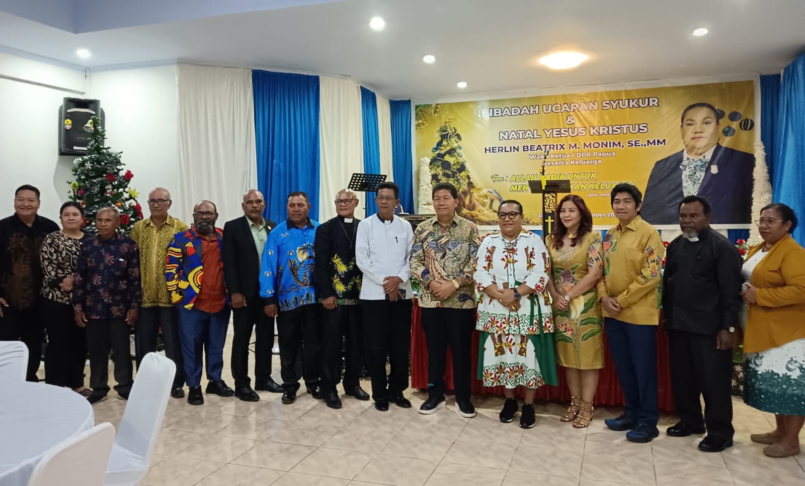 Jayapura,- Wakil Ketua I DPR Papua, Herlin Beatrix Monim, SE., MM, menggelar Ibadah Ucapan Syukur yang dirangkaikan dengan Perayaan Natal Yesus Kristus bersama para hamba Tuhan dan jemaat, Senin malam (22/12/2025).