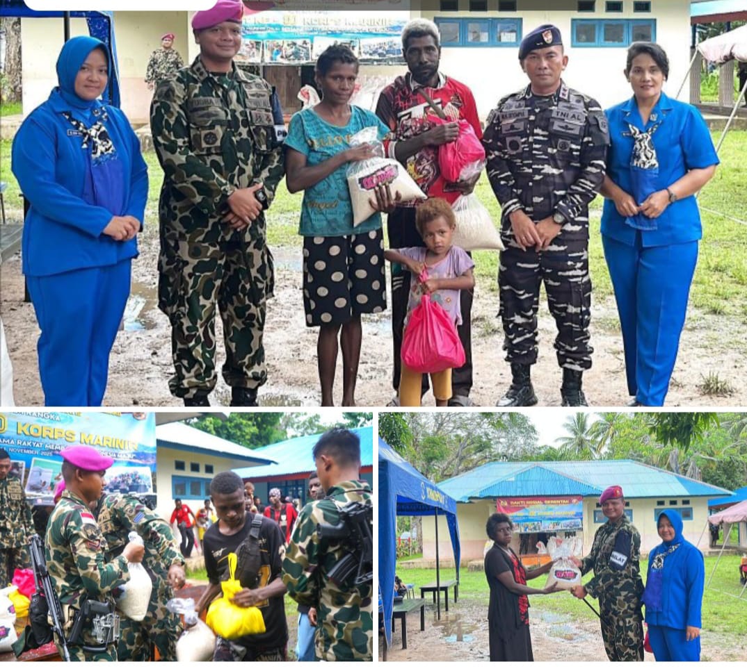 Share0MERAUKE-Dalam rangka memperingati hari ulang tahun ke-80 Korps Marinir, Prajurit Yonmarhanlan XI melaksanakan bakti sosial dan bakti kesehatan kepada masyarakat daerah perbatasan RI – PNG, bertempat di Kampung Rawa Biru Kelurahan Rawa Biru Distrik Sota Kabupaten Merauke Provinsi Papua Selatan, Selasa (11/11).