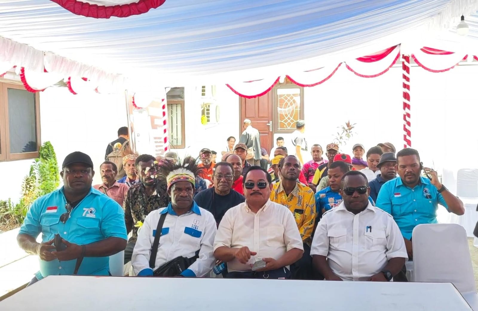 Tampak tokoh adat, masyarakat dan Paguyuban duduk bersama bakal pasangan calon Bupati dan Wakil Bupati Jayapura JMW – DM.