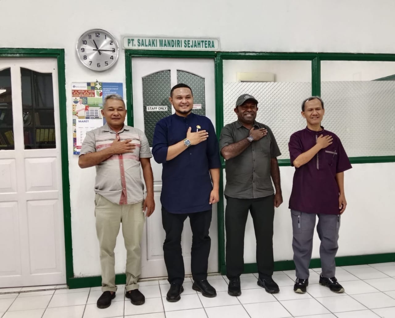 Jayapura – Ketua DPRK Kabupaten Sarmi, Muhamat Asari Tiris bersama Bupati Sarmi, Dominggus Catue menyambangi Kantor Manejer Perwakilan PT Salaki di jayapura pada Jumat siang, 21 Maret 2025,