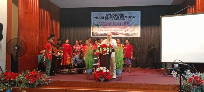 Jayapura – Dalam semangat Hari Sumpah Pemuda, Persekutuan Gereja-Gereja di Papua (PGGP) bersama Persekutuan Gereja-Gereja Pentakosta Indonesia (PGPI) Provinsi Papua dan Asosiasi Pendeta Indonesia (API) Papua menggelar Kebaktian Kebangunan Rohani (KKR) bertema “Generasi Muda Pelopor Persatuan dan Perdamaian Menuju Rekonsiliasi Bangsa” (1 Timotius 4:12), dengan subtema “Yesus Kristus Rekonsiliator Dunia” (Yohanes 14:6).