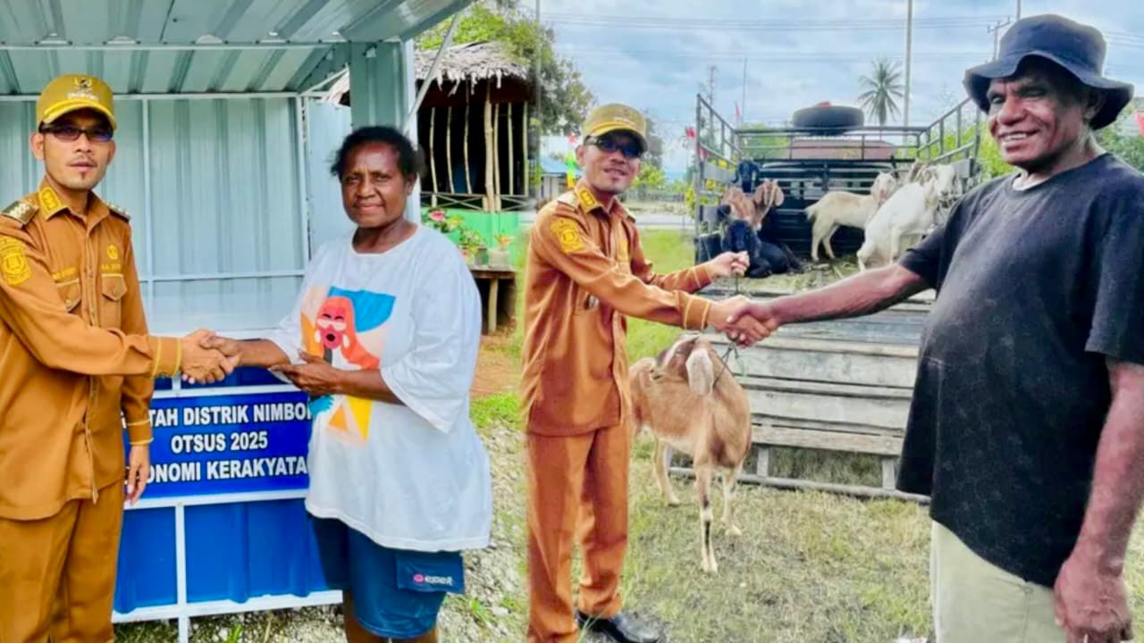 SENTANI,- Pemerintah Distrik Nimbokrang, Kabupaten Jayapura, menyalurkan 20 ekor kambing dan 40 unit box kontainer kepada penerima manfaat Orang Asli Papua (OAP), sebagai bagian dari program peningkatan ekonomi kerakyatan. Program ini bersumber dari Dana Otonomi Khusus (Otsus) Tahun 2025.
