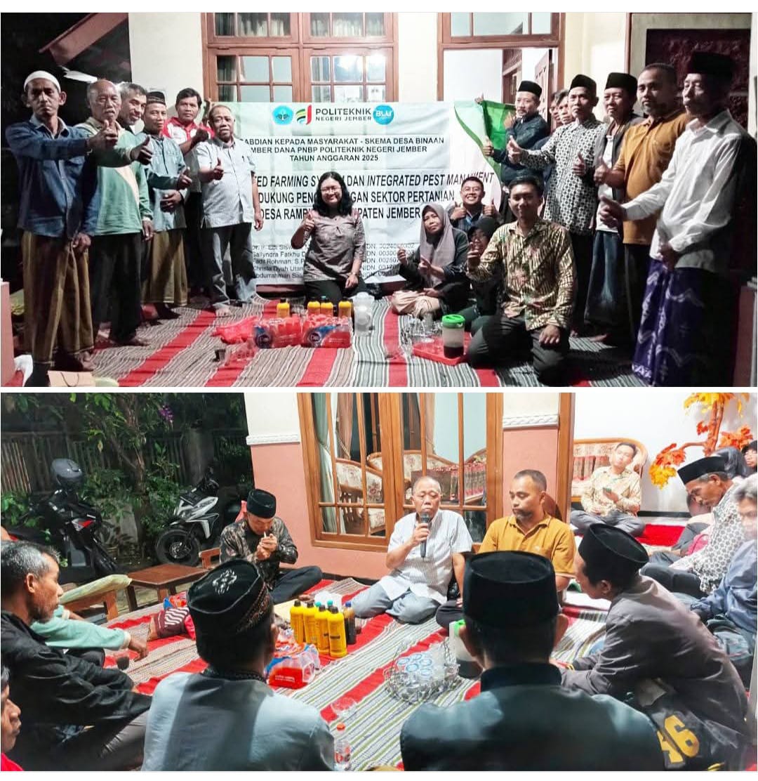 JEMBER-Dosen dan mahasiswa Jurusan Produksi Pertanian Politeknik Negeri Jember (Polije) Politeknik Negeri Jember (Polije) melaksanakan pengabdian masyarakat di Kelompok Tani Karya Bhakti di Dusun Gumuk Dempet Desa Rambipuji Kecamatan Rambipuji Kabupaten Jember Provinsi Jawa Timur, Rabu (1/10).