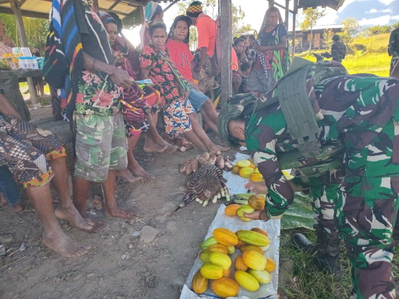 Dengan tetap mengedepankan pengamanan, para personel Yonif 641/Bru Pos Apalapsili berinteraksi dan berkomunikasi dengan mama-mama yang menjual hasil taninya sehingga mereka bisa pulang lebih cepat ke rumah, para prajurit membeli hasil tani yang di perdagangkan hari ini dan membawa pulang hasil belanjaannya.