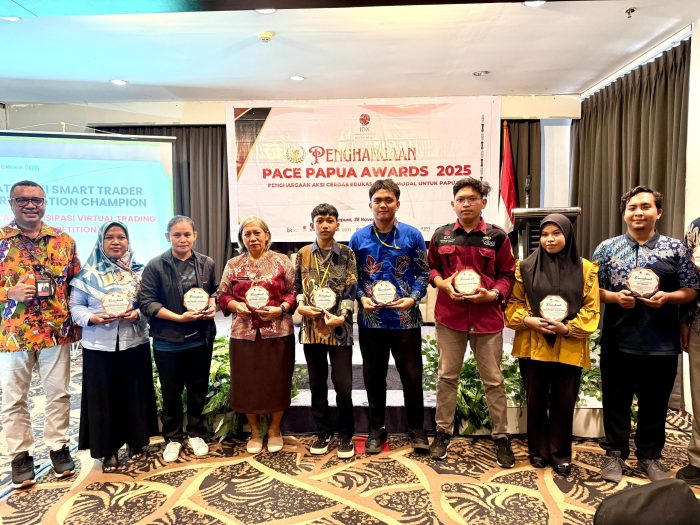 Jayapura – Kantor Perwakilan Bursa Efek Indonesia (BEI) Wilayah Papua kembali menggelar “Apresiasi Aksi Cerdas Edukasi Pasar Modal untuk Papua” atau PACE Papua Award 2025, sebuah ajang apresiasi tahunan bagi Galeri Investasi BEI yang telah menunjukkan aksi nyata, kreativitas, dan konsistensi dalam menggerakkan edukasi serta literasi pasar modal di Tanah Papua.