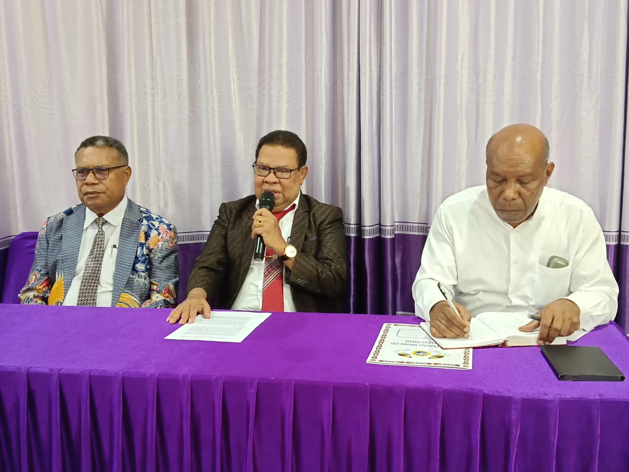 Hal ini di sampaikan Ketua BPS Sinode GKI di Tanah Papua, Pdt. Andrikus Mofu, M.Th, di dampingi Wakil Ketua I Sinode, Hiskia Rollo dan Kepala Sekretariat GKI di tanah Papua Pdt. Willem Rumbiak STh, MM, saat memberikan keterangan Pers kepada senumlah Media di Kantor BPS Sinode GKI di Tanah Papua, Rabu, 23 Maret 2025.