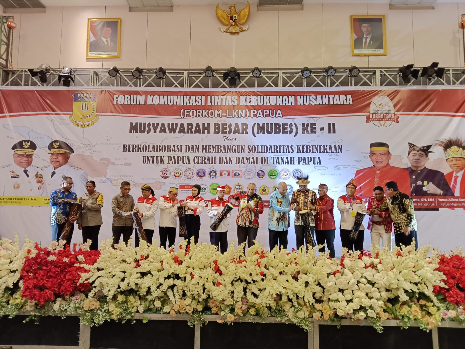 Mubes II Forkom LKN Papua ini mengusung tema “Berkolaborasi dan Membangun Solidaritas Kebhinekaan untuk Papua Cerah dan Damai di Tanah Papua” dibuka dengan resmi oleh Gubernur Papua Mathius D Fakhiri yang diwakili Wakil Gubernur Papua Aryoko Rumaropen di Hotel Suni Abepura, Kota Jayapura – Papua, Minggu siang, 14 Desember 2025.
