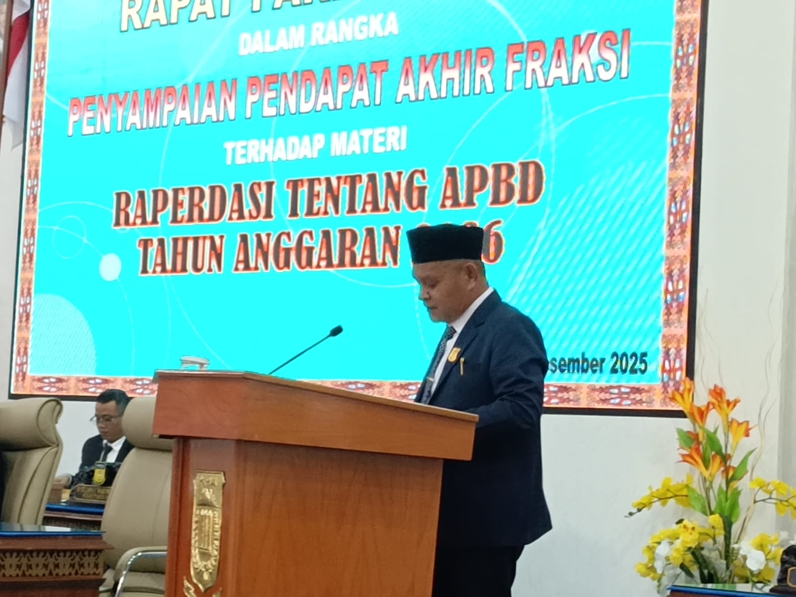 Pendapat akhir fraksi dibacakan oleh Arifin Mansur, S.Ag, pada Rapat Paripurna V DPR Papua, Kamis malam, 11 Desmber 2025.