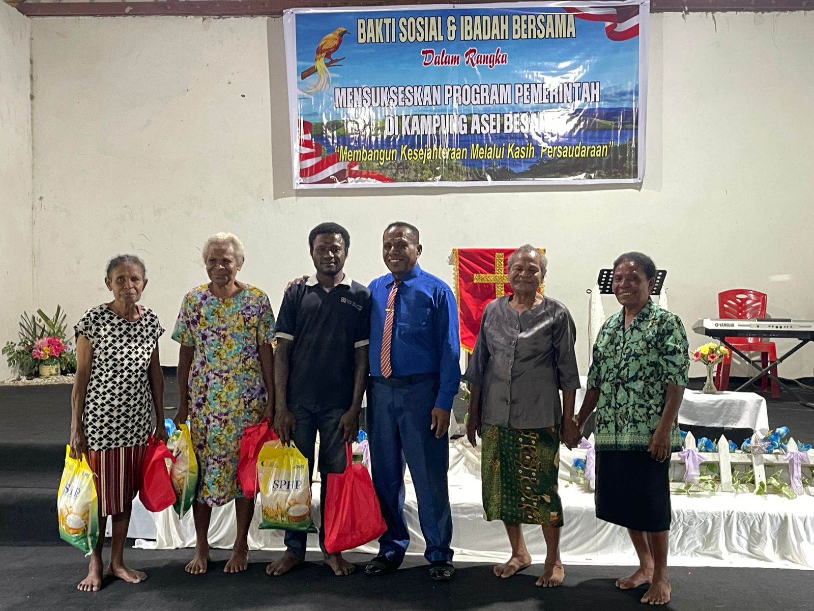 Ondofolo Kampung Asei Besar, Martin Luther Ohee, menyebut kegiatan tersebut bukan sekadar penyaluran bantuan, tetapi juga bentuk nyata perhatian pemerintah pusat terhadap masyarakat di daerah.