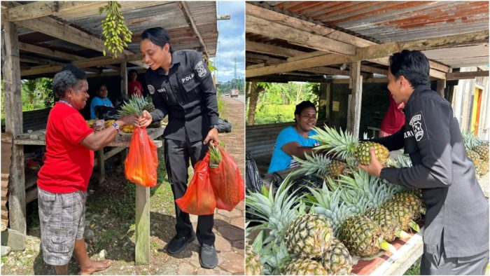 Hal tersebut ditunjukkan melalui kegiatan sederhana namun bermakna yang dilakukan Personel Satgas Humas Ops Damai Cartenz Iptu I Gde Pradana Sthirabudhi, S.Ds., dengan berbelanja buah lokal milik mama-mama Papua di Jl. Agimuga Mile 32, Timika, Jumat, 19 Desember 2025.