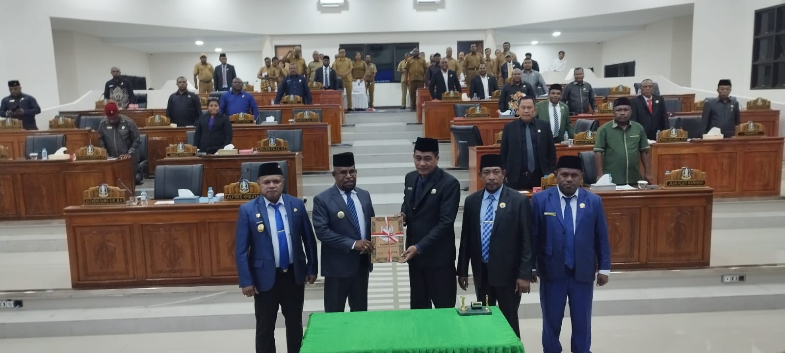 Jawaban Bupati Jayapura Dr. Yunus Wonda, S.H., M.H., disampaikan oleh Wakil Bupati Jayapura Haris Richard S. Yocku, S.H., menyampaikan apresiasi dan terima kasih yang sebesar-besarnya kepada DPRK Jayapura Papua, yang telah bekerja dengan maksimal dalam menjalankan fungsinya guna membahas dan mengevaluasi Nota Keuangan serta Raperda tentang APBD Perubahan Kabupaten Jayapura Tahun Anggaran 2025.