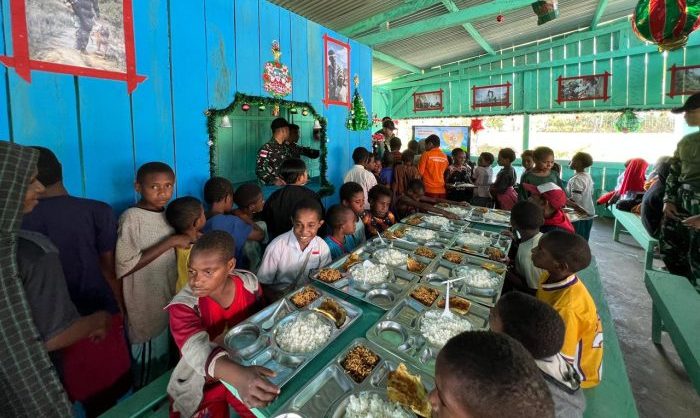 Pegunungan Bintang — Mengawali hari pertama masuk sekolah di tahun 2026, Satgas Pamtas RI–PNG Yonif 751/Vira Jaya Sakti (VJS) melaksanakan kegiatan sosial dengan memberikan sarapan kepada anak-anak sekolah di wilayah binaan. Kegiatan ini bertujuan menambah semangat siswa saat berangkat sekolah serta membantu mereka lebih fokus dan siap menerima pelajaran di kelas. (Rabu, 7/1/2026).