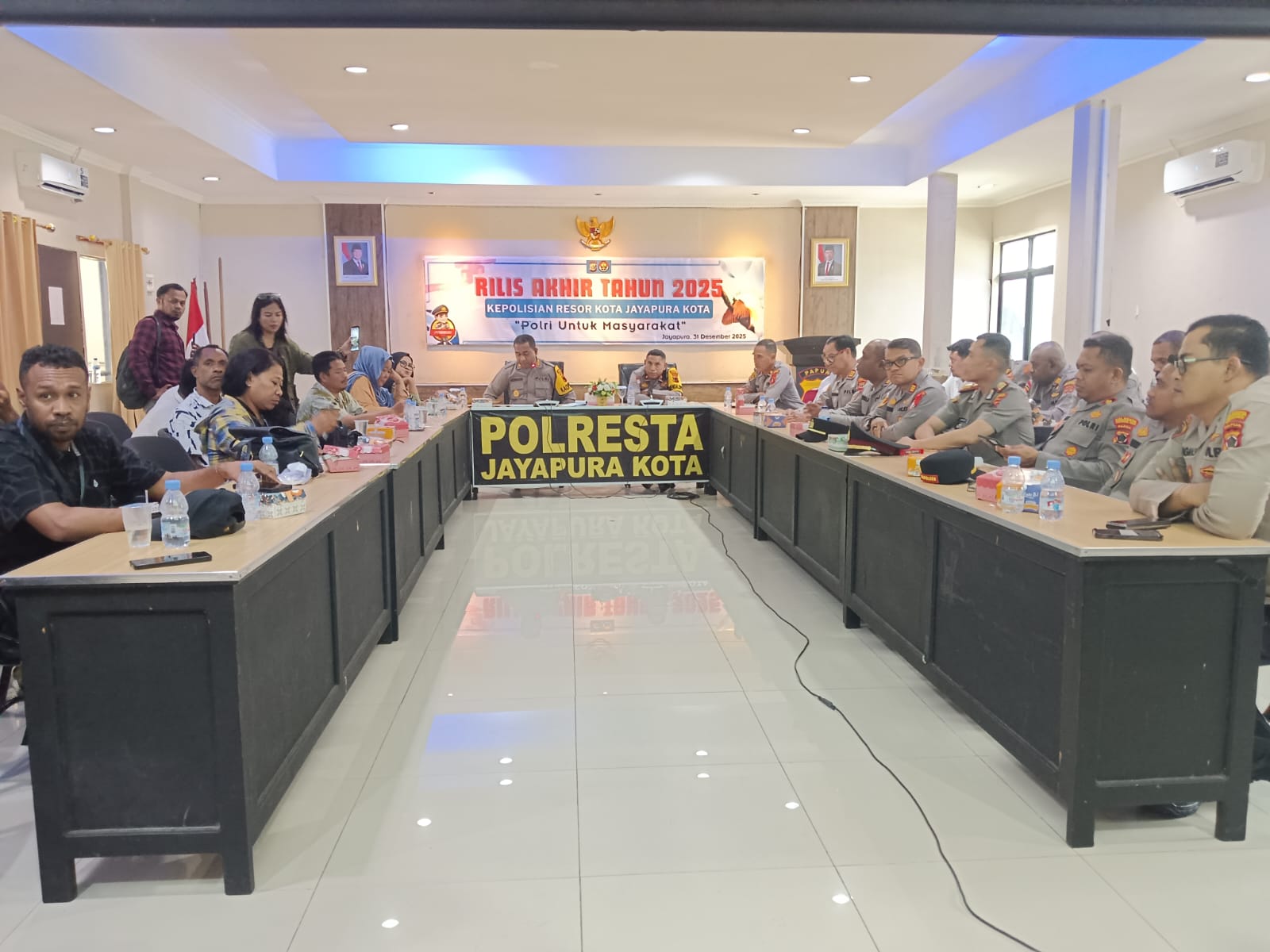 Jayapura,- Komitmen Polresta Jayapura Kota dalam memerangi peredaran gelap narkoba terus ditunjukkan secara nyata. Sepanjang tahun 2025, Polresta Jayapura Kota mencatatkan kenaikan signifikan pengungkapan kasus narkoba sebesar 45 persen, sebagaimana dipaparkan dalam Rilis Akhir Tahun 2025 yang digelar di Aula Mapolresta Jayapura Kota, Rabu 31 Desember 2025, pagi.