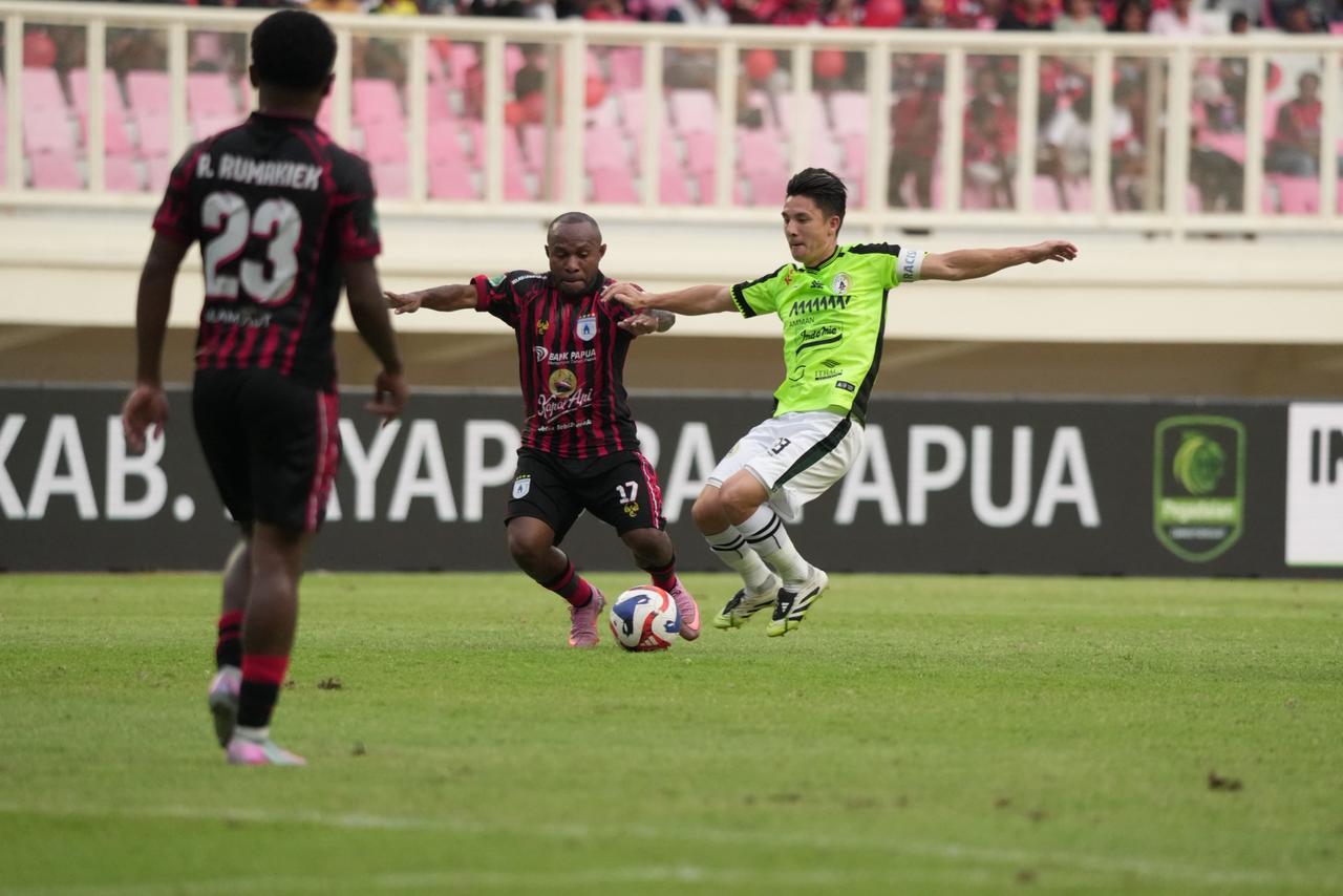 Laga yang digelar di Stadion Lukas Enembe<span;>, Kabupaten Jayapura, Papua, tim berjuluk Mutiara Hitam justru mendapat tekanan sejak menit awal.