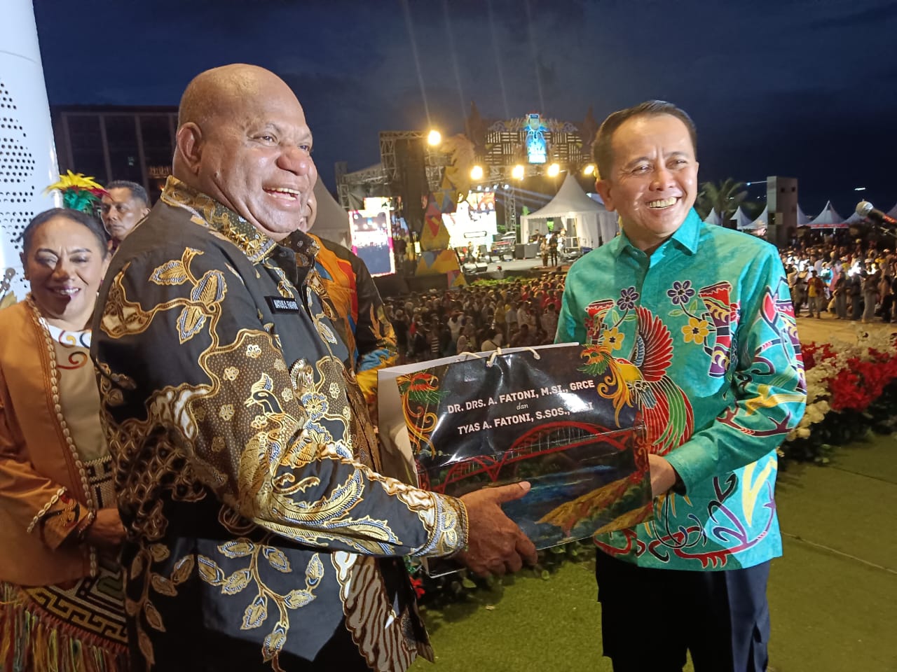 Sebelumnya, prosesi adat dimulai dari kediaman Gubernur Papua di Bayangkara dengan penyambutan tradisi Awyu Inanwatan, kemudian rombongan melanjutkan perjalanan ke Ruko Dok 2 untuk bergabung dengan Wakil Gubernur Papua yang disambut dengan adat La Pago dan Mee Pago.