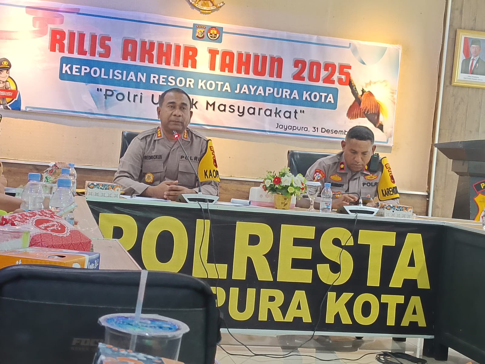 ‎Hal itu diungkapkan Kapolresta Jayapura Kota Kombes Pol Fredrickus W. A. Maclarimboen, S.I.K., M.H., CPHR saat menggelar Rilis Akhir Tahun 2025 bertempat di Aula Mapolresta, Rabu pagi, 31 Desember 2025.