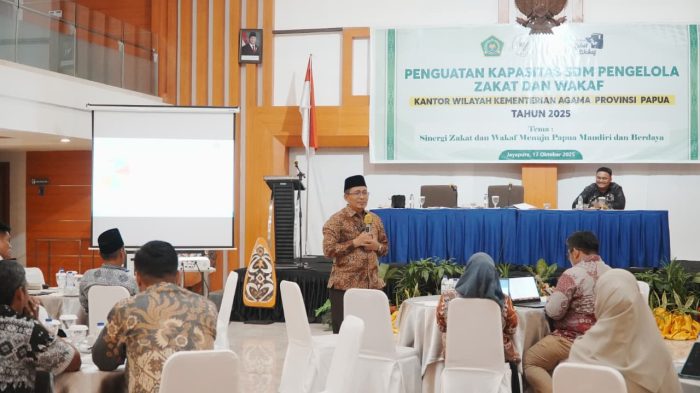 Hal ini disampaikan Waryono saat memberikan materi pada kegiatan Penguatan Kapasitas Sumber Daya Manusia (SDM) Pengelola Zakat dan Wakaf Tahun 2025, di Hotel Horison Kotaraja, Jayapura, Jumat (17/10/2025). Kegiatan yang mengusung tema “Sinergi Zakat dan Wakaf Menuju Papua Mandiri dan Berdaya”.
