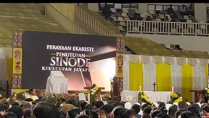 Jayapura – Sinode Keuskupan Jayapura telah berakhir ditandai dengan misa syukur yang dihadiri puluhan ribu umat di stadion Lukas Enembe, Sentani (08/02/2026).