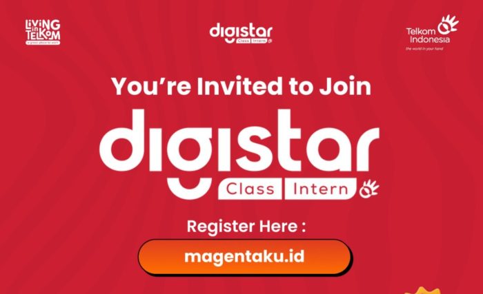 Pendaftaran Digistar Class Intern 2026 Batch 1 dibuka mulai 31 Januari hingga 8 Februari 2026, dan seluruh proses pendaftaran serta informasi program dapat diakses melalui platform resmi Kementerian BUMN di https://magenta.bumn.go.id.