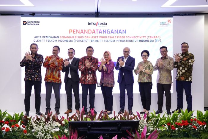 Jakarta – PT Telkom Indonesia (Persero) Tbk (Telkom) bersama operating company PT Telkom Infrastruktur Indonesia (InfraNexia), resmi menandatangani akta pemisahan (deed of spin-off) sebagian bisnis dan aset wholesale fiber connectivity dari Telkom kepada InfraNexia.