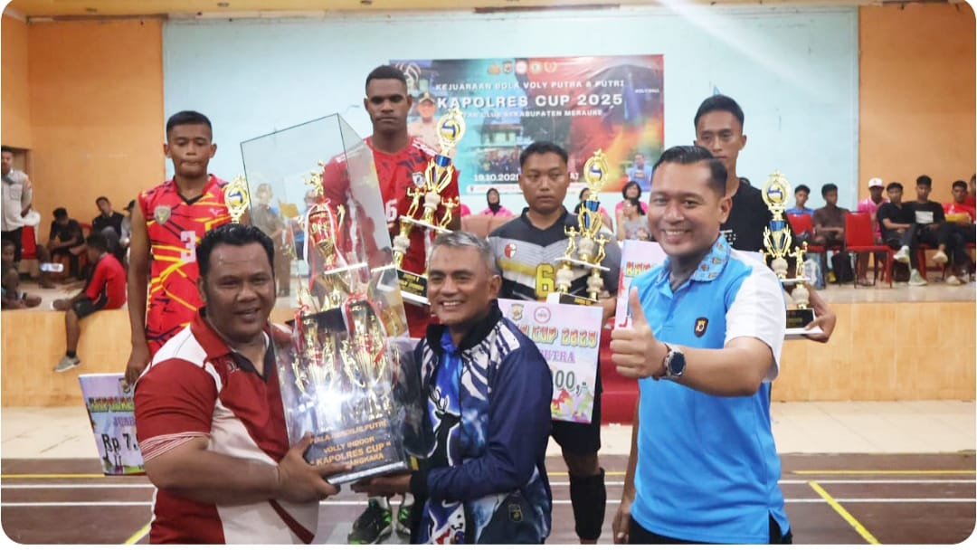 Kapolres Merauke, AKBP Leonardo Yoga mengemukakan bahwa Turnamen Kapolres Cup 2025 digelar dalam rangka mempererat silaturahmi, menumbuhkan semangat sportivitas, mencari bibit atlilet bola volley asal Kabupaten Merauke untuk mengikuti Porprov Papua Selatan serta menjalin kemitraan antara personil Polri dan masyarakat Merauke.(Iis)