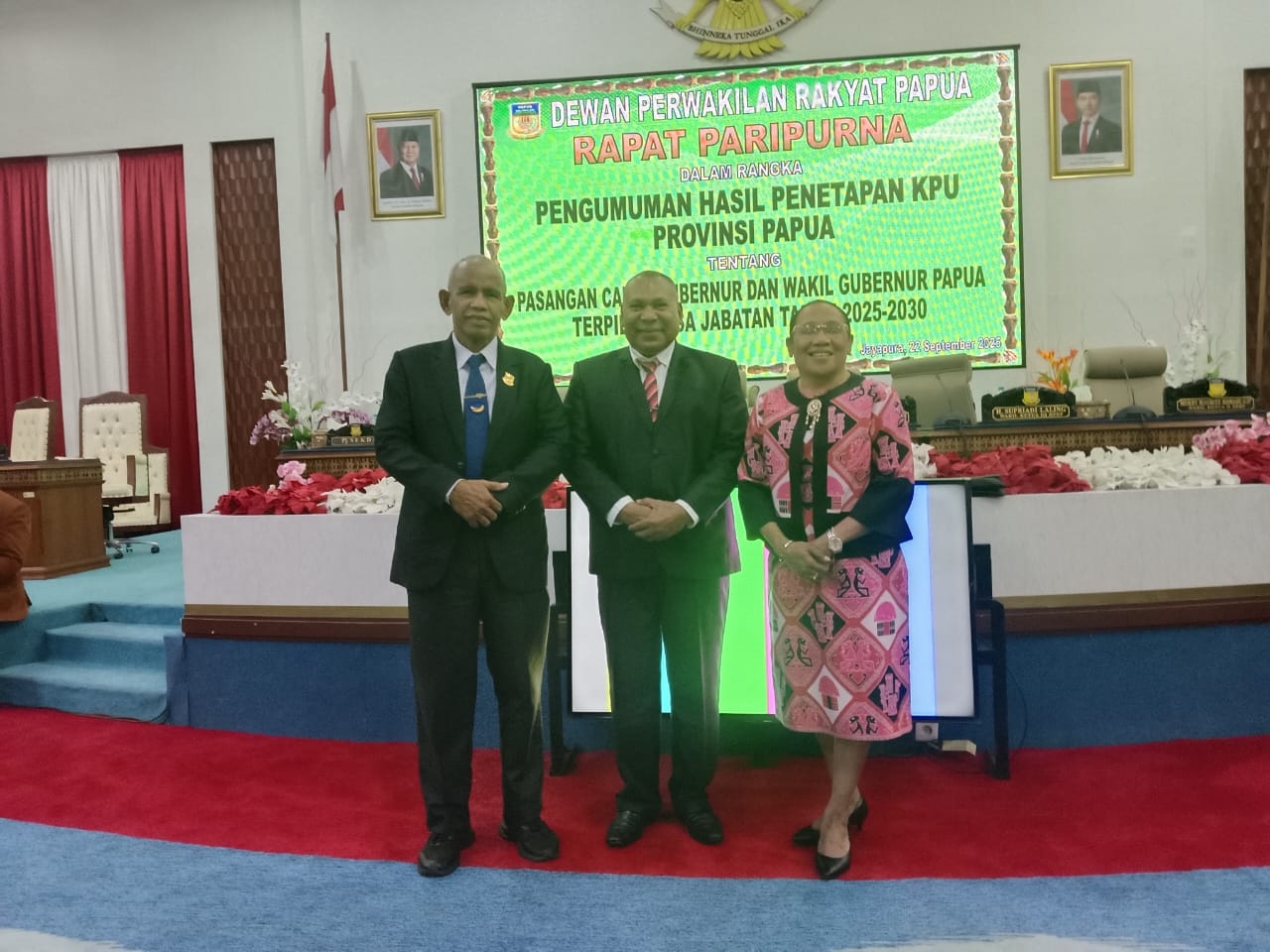 Jayapura, – Dewan Perwakilan Rakyat Papua (DPRP) secara resmi menetapkan pasangan Matius D. Fakhiri–Aryoko Rumaropen (Mari-Yo) sebagai Gubernur dan Wakil Gubernur Papua periode 2025–2030 melalui rapat paripurna pada Senin (22/9/2025).