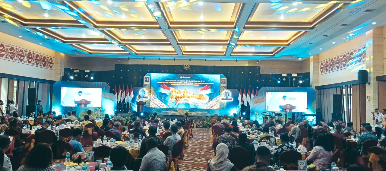 Jayapura,- Bank Indonesia Perwakilan Provinsi Papua menggelar Pertemuan Tahunan Bank Indonesia (PTBI) 2025 pada Rabu, 3 Desember 2025, dengan mengusung tema “Tangguh dan Mandiri: Sinergi Mendorong Pertumbuhan Ekonomi Lebih Tinggi dan Berdaya Tahan.”
