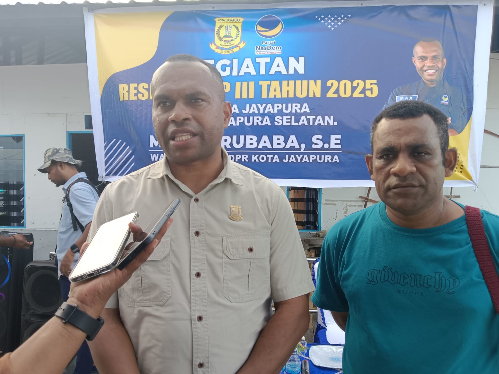 Jayapura,- Wakil Ketua I DPR Kota Jayapura, Max Karubaba, S.E., dari Partai NasDem, melaksanakan Reses Tahap III Tahun 2025 di RW 03 Kelurahan Hamadi, Distrik Jayapura Selatan, Jumat, 8 November 2025.