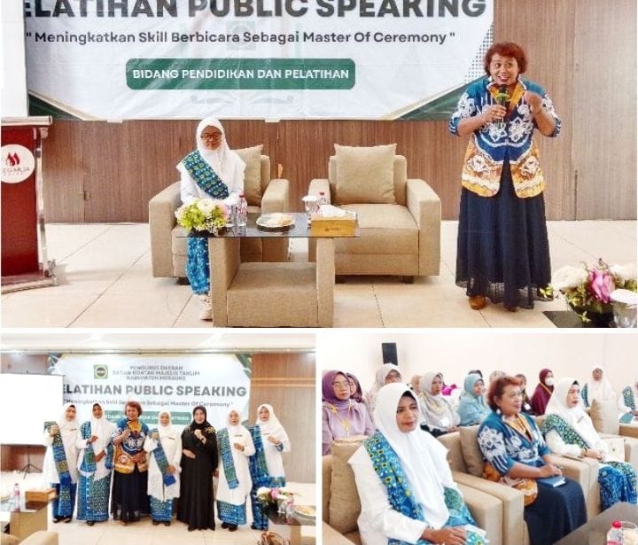 MERAUKE – Winona Welliken, salah satu public speaker dan MC profesional dari Kabupaten Merauke tampil sebagai narasumber pada pelatihan public speaking ke-3 yang dilaksanakan Pengurus Daerah Badan Kontak Majelis Taklim (BKMT) Kabupaten Merauke, Sabtu (31/1) di Hotel Megaria. Adapun tema yang diusung pada pelatihan tersebut yaitu “Meningkatkan skill berbicara sebagai Master of Ceremony”.